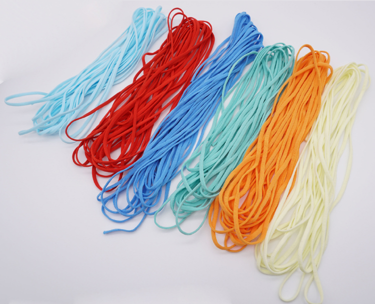 2:耳掛/耳帶繩,一般制作耳帶繩的材料有氨綸、滌綸、錦綸。它主要起著將口罩固定在臉上的連接作用。耳帶繩作為口罩開發(fā)者面部貼合的主要樞紐,主要從長度和大小來判斷它的好壞,因為耳帶是要套在耳朵上的,如果太細(xì)長時間的佩戴會使我們的耳朵感覺不舒服,耳帶繩的長度直接關(guān)系到面部的貼合和隔絕細(xì)菌的有效性。一般成人口罩的耳帶繩為17厘米,而兒童口罩的耳帶繩一般是15厘米。