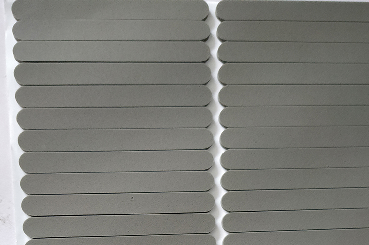 1:普通密度海綿條,主要規(guī)格有120mm*12mm左右,采用環(huán)保海綿、環(huán)保膠水制作而成,通過(guò)膠、復(fù)合、分切、沖型等工藝制作,由于其價(jià)格較低深受消費(fèi)者喜愛(ài)。