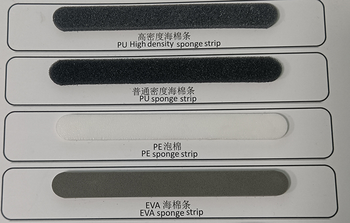 3:材料,普通海綿條和高密度海綿條都是采用的環(huán)保海綿制作,而EVA海綿條則采用EVA泡棉制作。