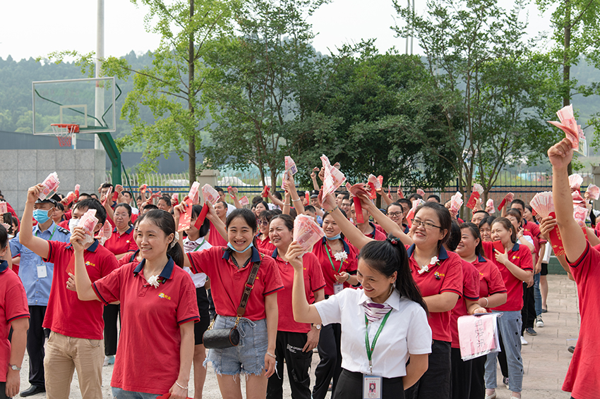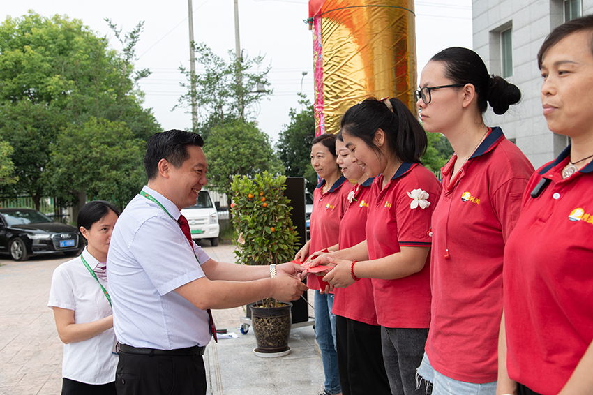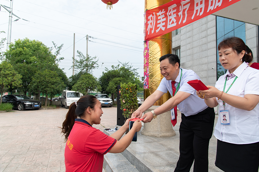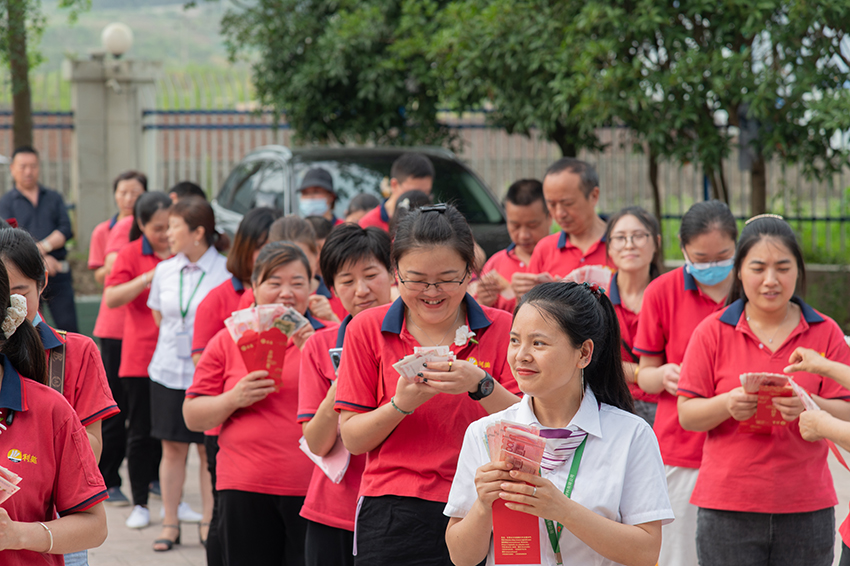 隨后,董事長(zhǎng)趙興洪給公司四、五月集體過生日的員工送上生日祝福和生日紅包,發(fā)放傳幫帶優(yōu)秀獎(jiǎng),五月優(yōu)秀員工,抖音破萬獎(jiǎng),以及年限獎(jiǎng)金,春節(jié)有薪補(bǔ)貼等等福利。并向所有利美集團(tuán)的家人們送出了端午節(jié)的祝福。董事長(zhǎng)趙興洪表示,利美集團(tuán)從創(chuàng)業(yè)初期開始就一直秉承“感恩、奮進(jìn)、責(zé)任”的發(fā)展理念,堅(jiān)持“孝德、務(wù)實(shí)、仁愛”的企業(yè)文化,希望大家牢記在心,并以實(shí)際行動(dòng)付諸在平時(shí)的工作生活中。并宣布了利美集團(tuán)目前開展中的幾項(xiàng)重大喜訊:三期項(xiàng)目主體建設(shè)施工合同在6.1正式簽約,預(yù)計(jì)在今年12月竣工啟用,屆時(shí)利美集團(tuán)將擴(kuò)大生產(chǎn)規(guī)模,提供更多的就業(yè)崗位給家鄉(xiāng)人;同時(shí)公司被射洪市委市政府列為上市培育企業(yè),已開始上市籌備工作。