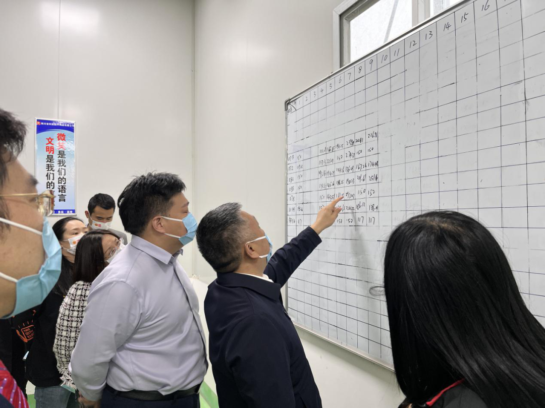 夏建軍常務(wù)副主席一行查看押出車間工人工資表。