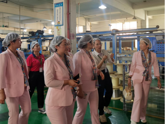 總經(jīng)理張小麗、生產(chǎn)副總賴(lài)英娣、外貿(mào)部經(jīng)理羅雪嬌、內(nèi)貿(mào)部經(jīng)理敬恒杰給予了熱情招待,并陪同先后參觀了押出車(chē)間、注塑車(chē)間、裁線車(chē)間、耳帶車(chē)間及辦公區(qū)域。