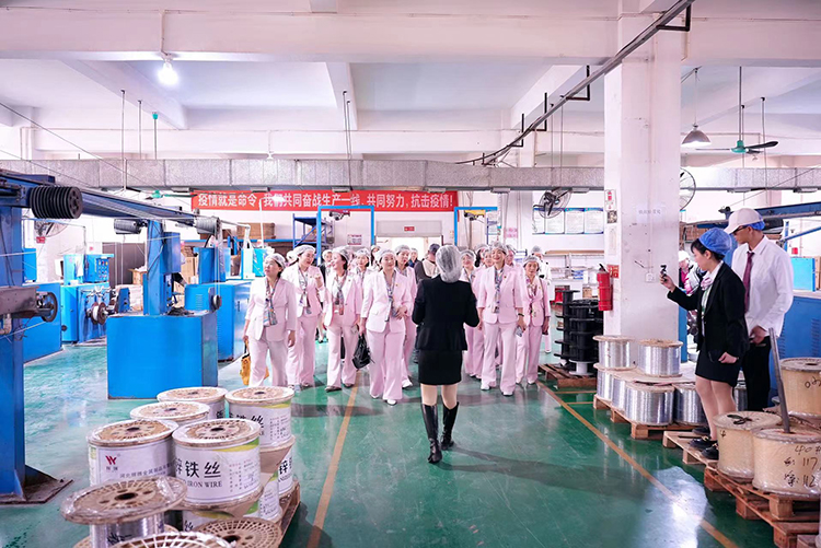 總經(jīng)理張小麗、生產(chǎn)副總賴英娣、外貿(mào)部經(jīng)理羅雪嬌、內(nèi)貿(mào)部經(jīng)理敬恒杰給予了熱情招待,并陪同先后參觀了押出車間、注塑車間、裁線車間、耳帶車間及辦公區(qū)域。
