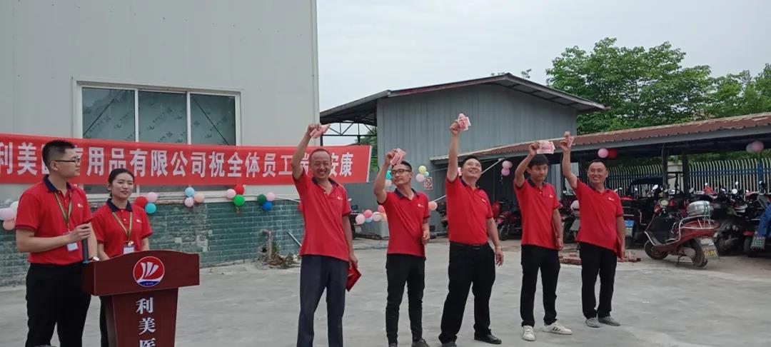 大家高聲齊唱口號:“好口罩,利美造!”,把利美建設(shè)成為一個現(xiàn)代化的工廠而努力。