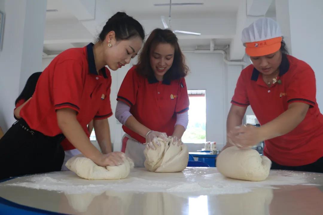 當(dāng)天上午、員工在食堂和面包包子、包餃子。