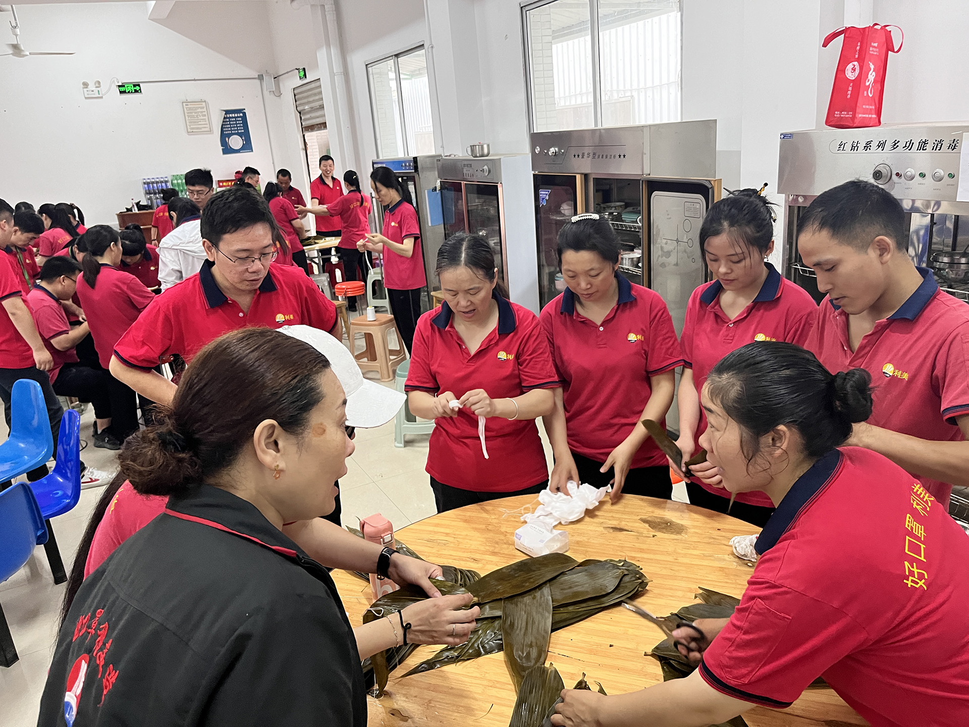 在當天上午,員工在食堂包粽子,包包子。