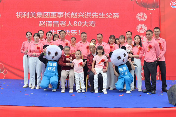 感恩孝德是利美集團(tuán)一直以來(lái)秉承的企業(yè)文化,今天這個(gè)喜慶的日子也正好是利美集團(tuán)董事長(zhǎng)父親的八十大壽,壽星和老伴在女兒和兒媳陪伴下入場(chǎng),兒女們上臺(tái)一起拜壽,兒子代表趙董致辭,現(xiàn)場(chǎng)的所有人都感受到了兒女們對(duì)老人的關(guān)愛(ài)和孝道。