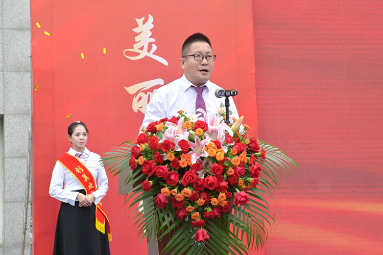 利美集團(tuán)總經(jīng)理張小麗女士擔(dān)任本次藝美興竣工投產(chǎn)活動(dòng)的主持人,宣布慶典正式開(kāi)始。
